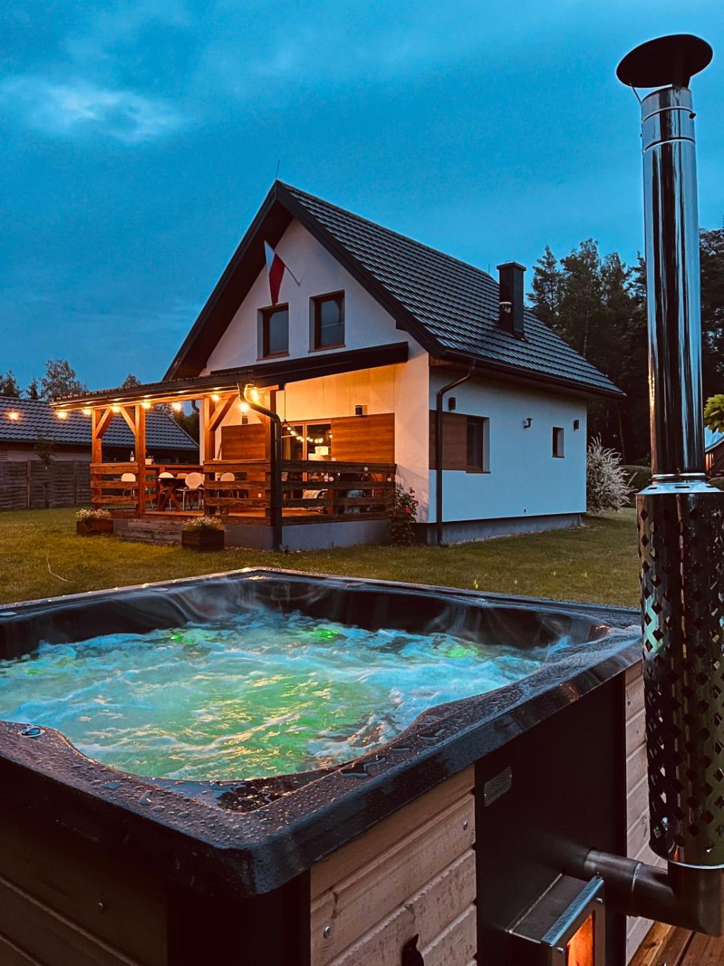 Domek z kominkiem nad jeziorem z jacuzzi ogrodowym - Sumowo